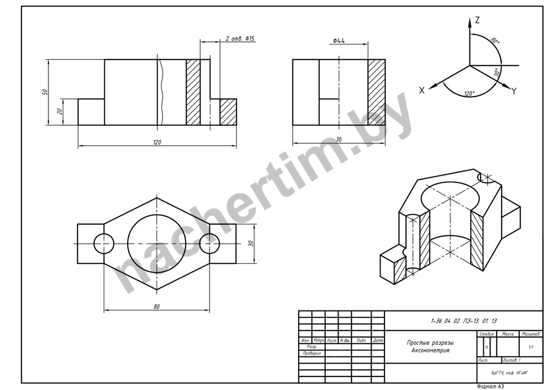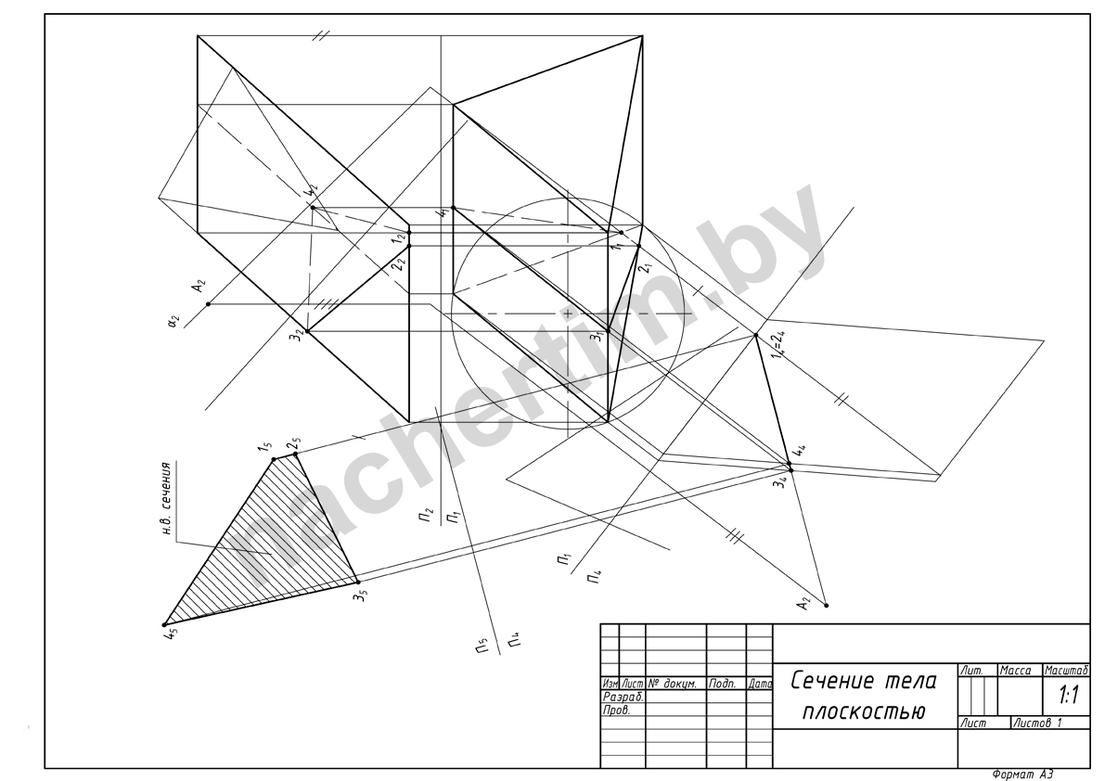 Формат А3 (виды, разрезы, аксонометрия, развертка, начертательная геометрия и др.)