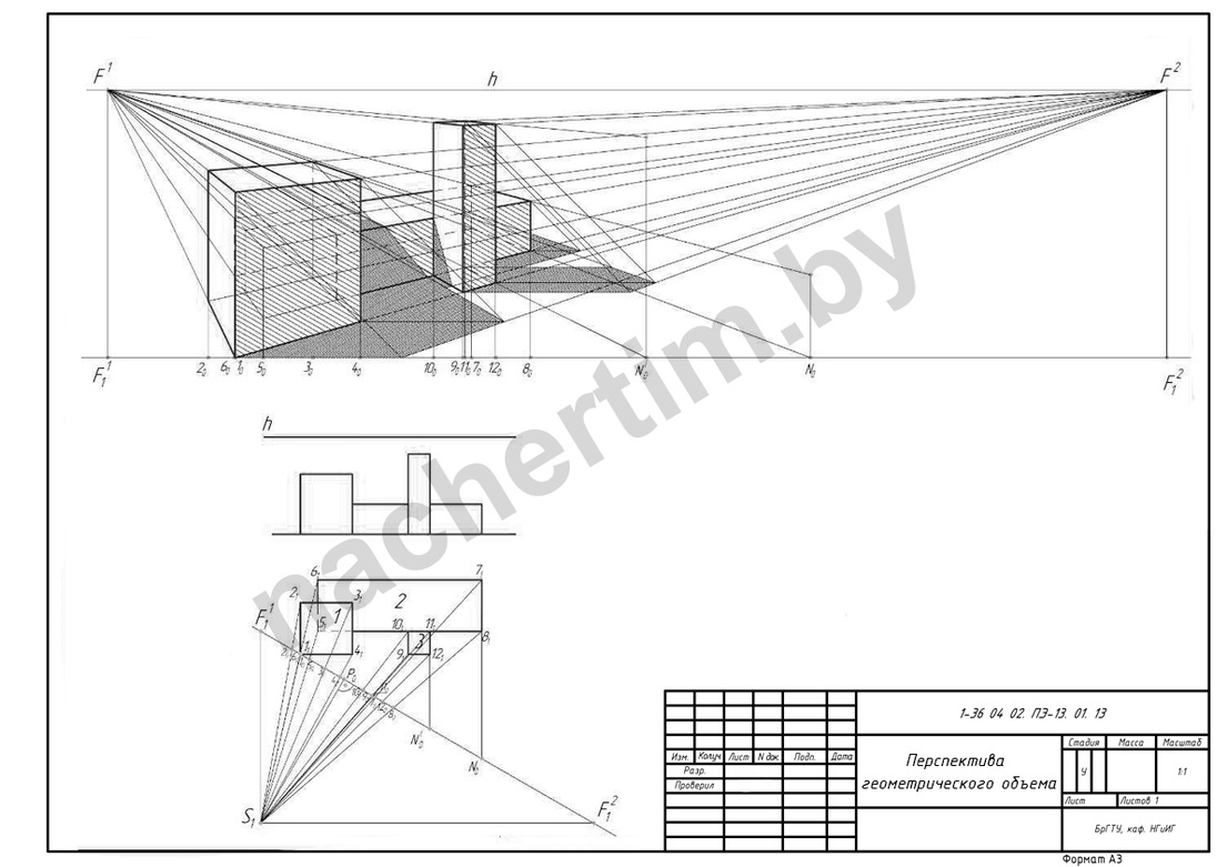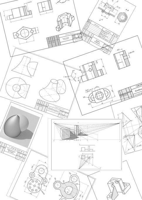 Формат А3 (с заданиями по типу - сборочный чертеж, схемы, перспектива геометрического объема, проекции с числовыми отметками)